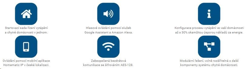 - Možnost rozšíření systému o další výrobky Homematic IP určené k zabezpečení, automatizaci a řízení vytápění.