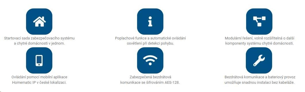 - Možnost rozšíření systému o další výrobky Homematic IP určené k zabezpečení, automatizaci a řízení vytápění.