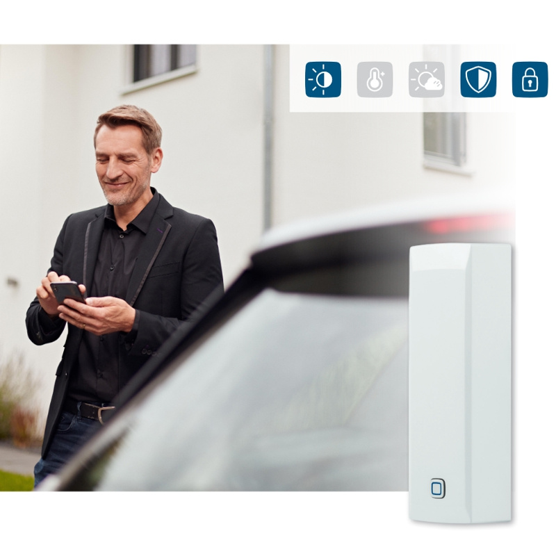 Senzor náklonu a vibrací (HmIP-STV) spolehlivě zjistí jakoukoliv neoprávněnou manipulaci nebo podnětnou aktivitu. Mezipřístrojová komunikace zajistí spuštění poplachu, zapnutí světel nebo sepnutí relé i bez internetového připojení.