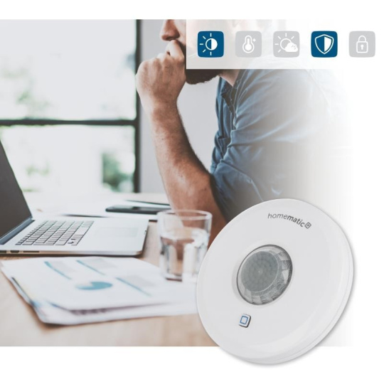 Kompaktní bezdrátový Senzor přítomnosti (HmIP-SPI) s PIR detektorem pohybu lze použít i jako poplachový senzor v systému chytré domácnosti Homematic IP nebo pro vzdálené spínání světel v závislosti na hodnotě okolního jasu a propojení s jinými produkty Homematic IP prostřednictvím bezplatné mobilní aplikace.