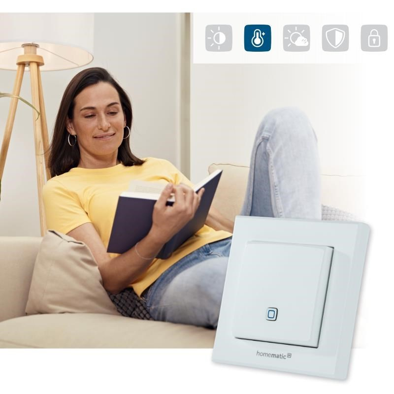 Zařízení může být provozováno nezávisle na systému pro přímé řízení akčních členů (HmIP-FAL) podlahového vytápění Homematic IP. Svými kompaktními rozměry je nástěnný Senzor teploty a vlhkosti (HmIP-STH) v rámečku velikostně srovnatelný se standardním vypínačem světla.