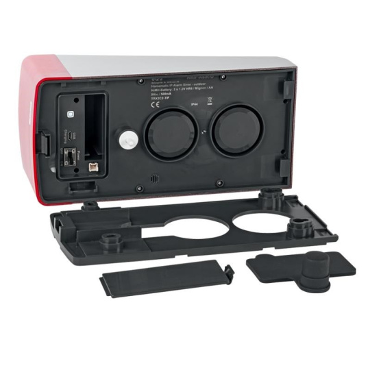 Díky solárnímu a bateriovému napájení lze poplachovou sirénu instalovat i na těžko přístupná místa bez potřeby doplňující kabeláže. Nedílnou součástí sirény je i držák pro rychlou a snadnou montáž.