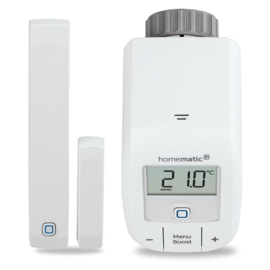 Autonomní sada pro inteligentní ovládání vytápění s otevřenou cestou do chytré domácnosti. Startovací sada pro regulaci vytápění (HmIP-SK9) a okamžitou úsporu energií, určená i pro přípravu integrace chytré domácnosti Homematic IP obsahuje dva základní prvky pro manuální řízení prostorové teploty v místnosti a proces vytápění dle individuálních potřeb: Termostatickou hlavici Basic HmIP-eTRV-B a bezdrátový Okenní a dveřní senzor - magnetický HmIP-SWDM, což vede k okamžité úspoře a snížení výdajů na energie až o 30 %.