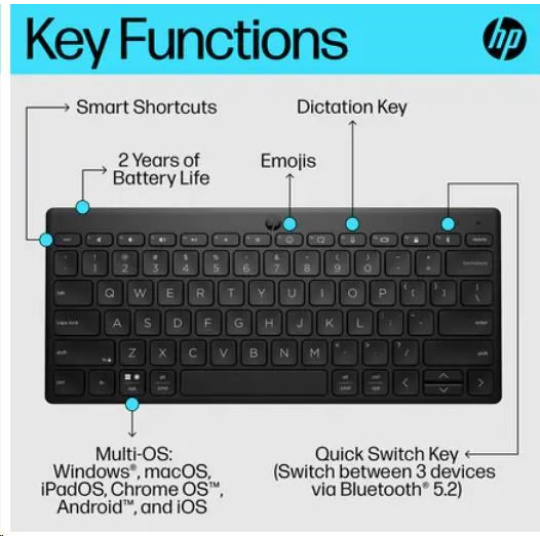 Kompaktní klávesnice HP 355 Bluetooth pro více zařízení