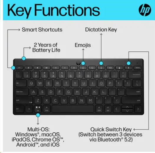 Kompaktní klávesnice HP 355 Bluetooth pro více zařízení