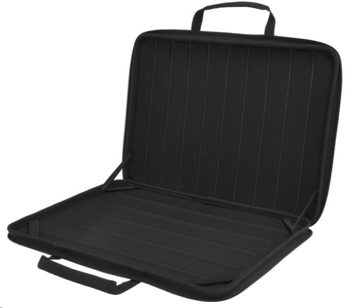 Pouzdro stačí jen rozepnout – není nutné zařízení vytahovat. Odolné vnitřní elastické pásky drží zařízení pevně na místě. Dobře přístupný port a konektor usnadňují připojení externích diskových jednotek a periferií. Po vyučování stačí zapnout zip a odnést notebook uchopením za dvojici odolných rukojetí nebo v batohu.