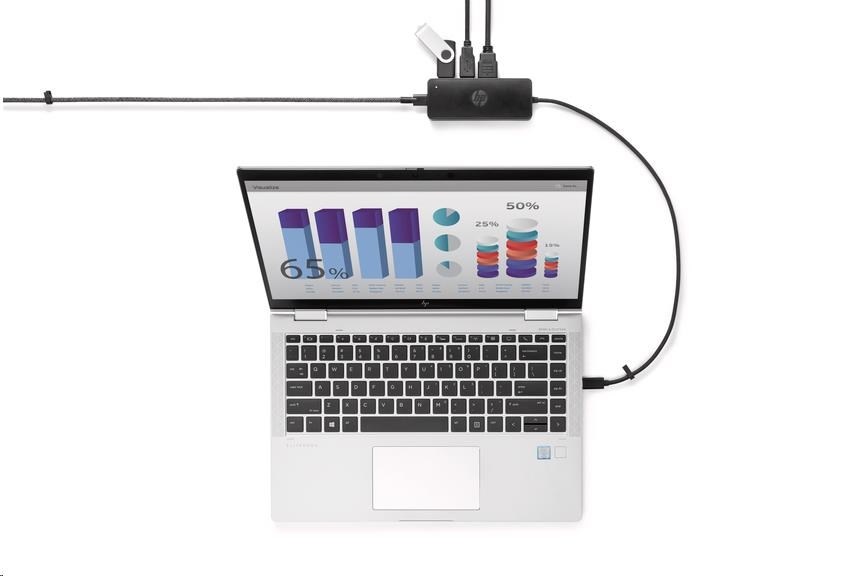 HP USB-C Travel Hub G2 rozšiřuje USB-C port notebooku o dva USB porty pro připojení vašeho příslušenství a HDMI nebo VGA výstup pro externí displej.