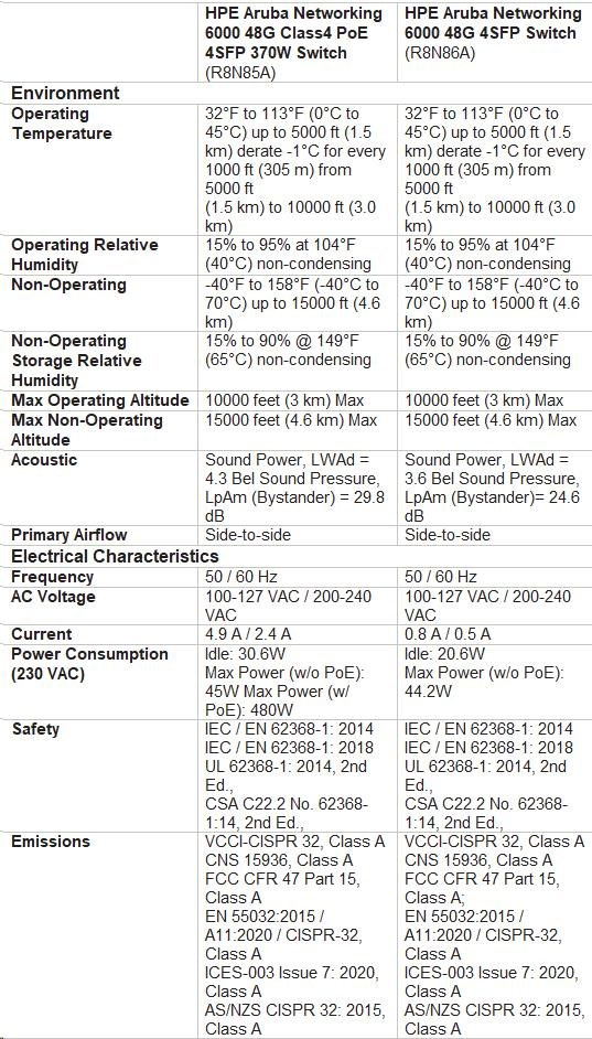 HPE Aruba Networking CX 6000 48G 4SFP Switch.