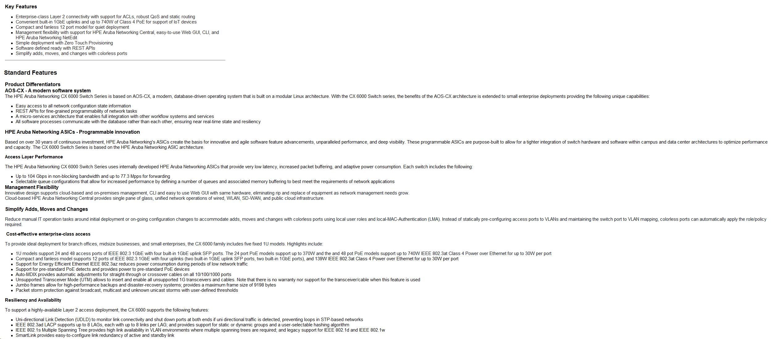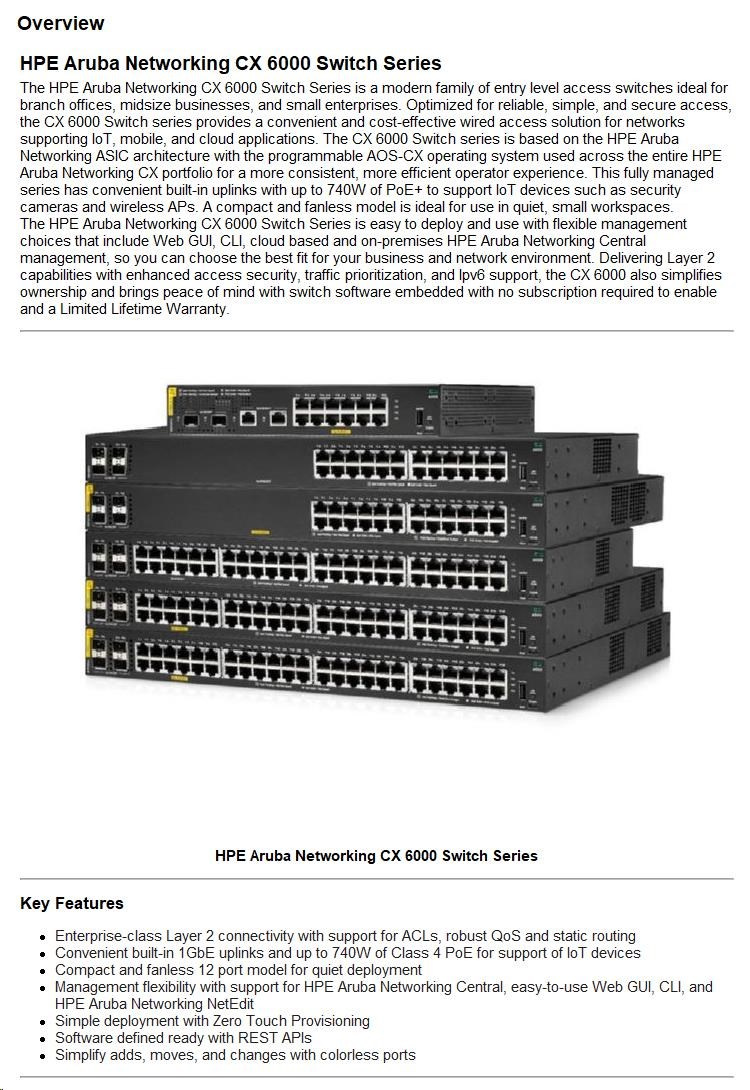 HPE Aruba Networking CX 6000 48G 4SFP Switch