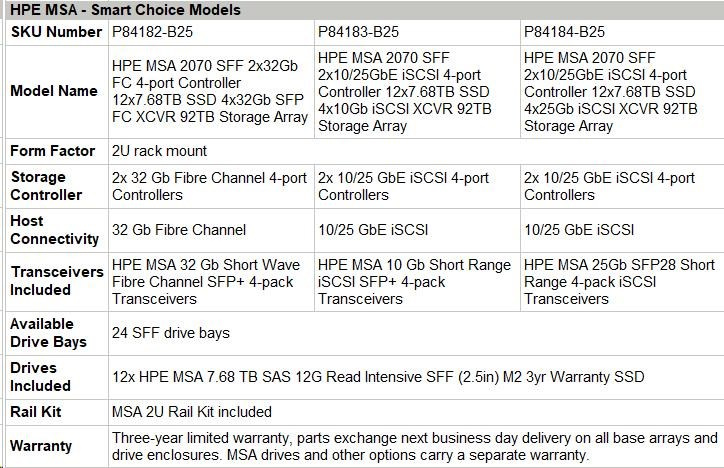 HPE MSA 2070 SFF 2x32Gb FC 4-port Controller 12x7.68TB SSD 4x32Gb SFP FC XCVR 92TB Storage Array Smart Choice.