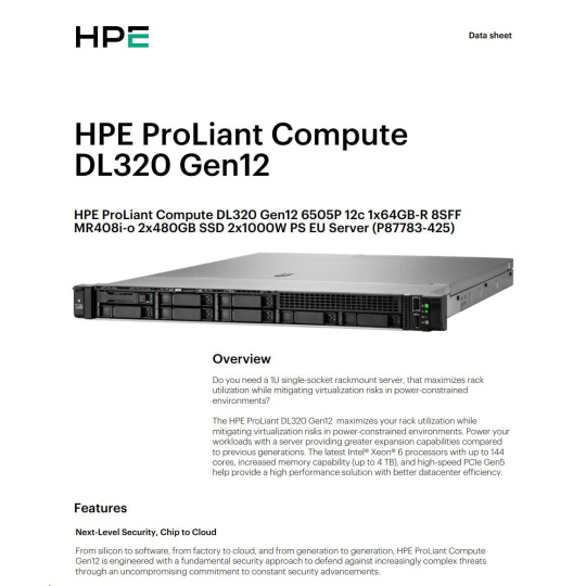HPE ProLiant Compute DL320 Gen12 servers are engineered for your hybrid world. The new ProLiant Compute Gen12 servers simplify the way you control your business’s compute—from edge to cloud—with a cloud operating experience.