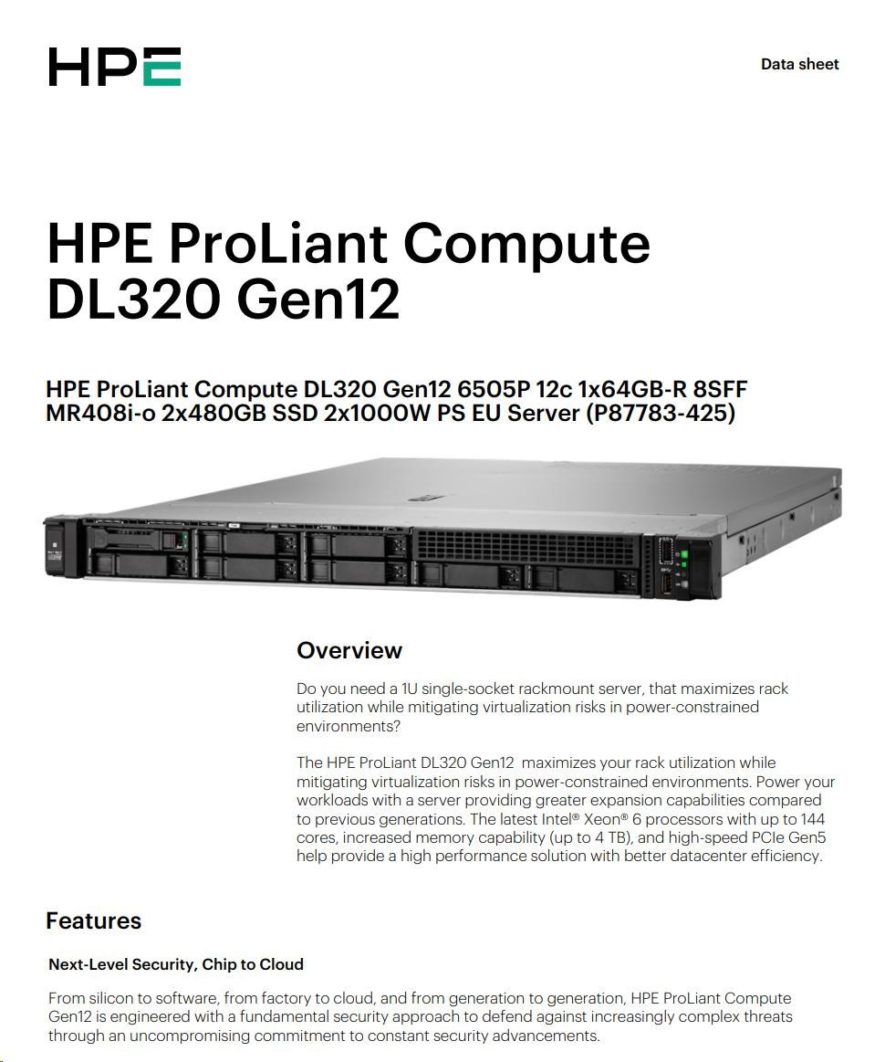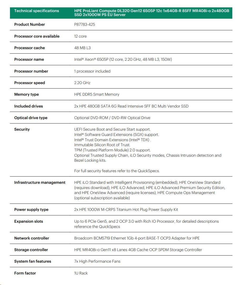 HPE PL DL320g12 6505P (2.2/12C) 4x32G (P69727) MR408i-o 8SFF 2x1000W NBD333 Smart Choice.