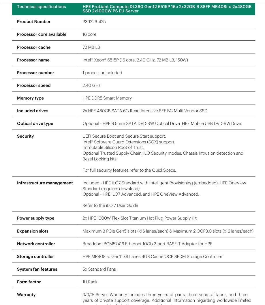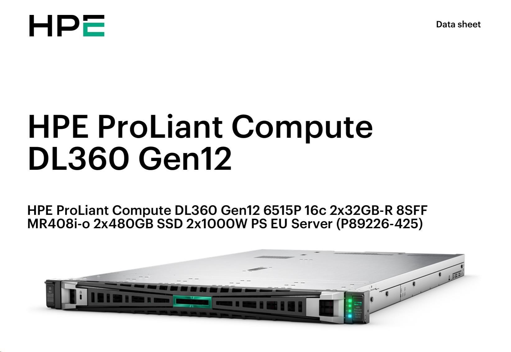 HPE PL DL360g12 6517P (3.2/16C) 2x32G (P69727) NS204 (2x480) MR408i-o 8SFF 2x1000W 4p1G NBD333 Smart Choice.
