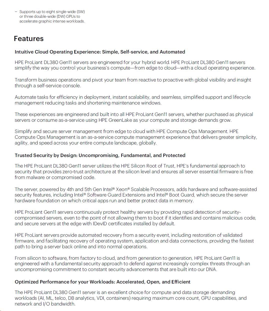 HPE PL DL380g11 4510 (2.4G/12C) 2x32G (p64706) 1x7.68TB 2x1000W 8SFF NVMe EmbSATAcontr 4p1G HPfans Smart Choice