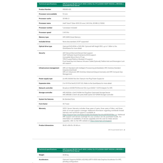 HPE PL ML350g11 4510 (2.4G/12C) 2x32G (P64706) NS204(2x480) MR408i-o 2x1000W 8SFF 4p1Gb Smart Choice.