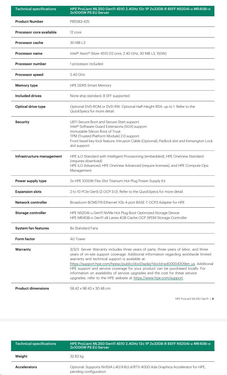 HPE PL ML350g11 4510 (2.4G/12C) 2x32G (P64706) NS204(2x480) MR408i-o 2x1000W 8SFF 4p1Gb 8fans Smart Choice