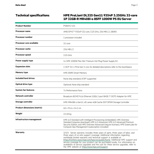 HPE PL RL300 Gen11 M128-30 1P 128G 8SFF Svr.
