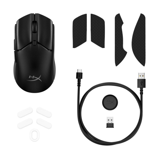 | Obsah balení | HyperX Pulsefire Haste 2 Mini Wireless, protiskluzové pásky HyperX, kluznice s nízkým třením, kabel USB-C na USB-A, bezdrátový USB modul, prodlužovací USB adaptér, úvodní příručka. |