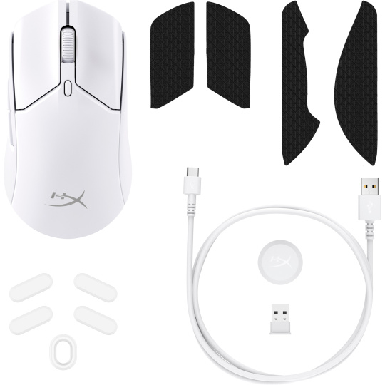 | Obsah balení | HyperX Pulsefire Haste 2, protiskluzové pásky HyperX, kluznice s nízkým třením, kabel USB-C na USB-A, bezdrátový USB přijímač, prodlužovací USB adaptér, úvodní příručka. |