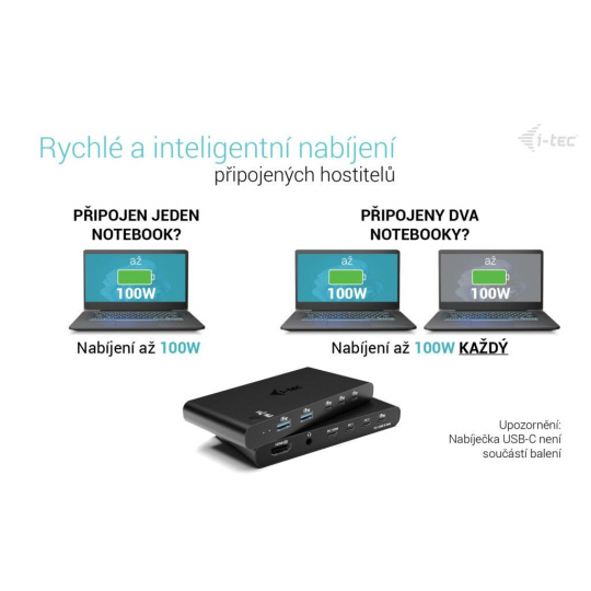 - Dvojité Power Delivery – nabíjení obou připojených zařízení (až 2× 100 W)