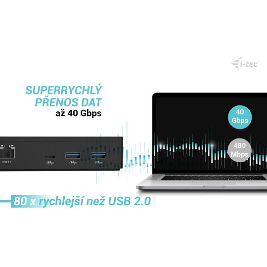 Díky množství USB portů (včetně USB 3.2 Gen 2 s rychlostí až 10 Gbps), portu Thunderbolt“ 4 nabízejícímu buď výstup v 8K, nebo ultra rychlý přenos dat 40 Gbps, a spolehlivému vysokorychlostnímu LAN připojení je tato dokovací stanice ideálním řešením pro náročné profesionály. Samozřejmostí je také podpora napájení až 90 W pro nabíjení notebooku nebo tabletu.