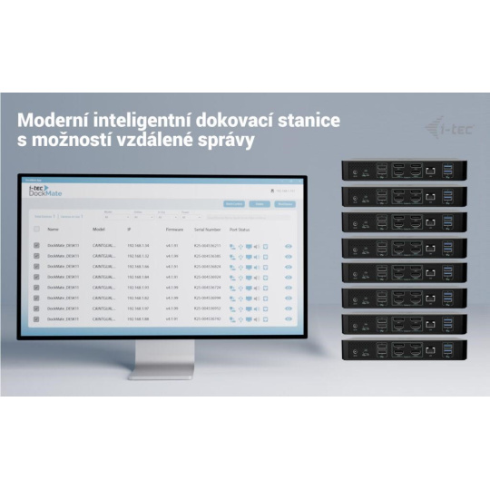 - Tato výkonná a univerzální dokovací stanice je vybavena dedikovaným LAN portem, který umožňuje plnou vzdálenou správu – až na úroveň jednotlivých portů – odkudkoliv. Správa funguje i bez připojení k hostitelskému zařízení – stačí napájení a připojení do LAN.
