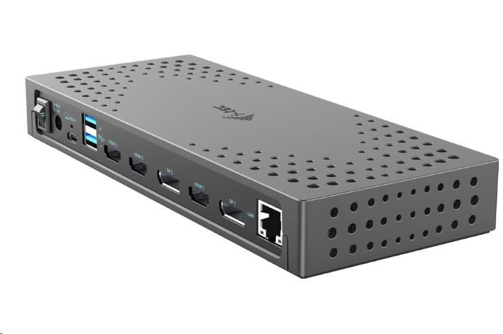 Výkonná profesionální dokovací stanice Gen 2, která podporuje výstup až na tři externí monitory ve vysokém rozlišení až 4K. Dokovací stanici lze použít prakticky se všemi notebooky, protože podporuje připojení ke všem běžným portům: 3.0, USB-C a Thunderbolt“ 3/4 a zároveň podporuje všechny běžné současné operační systémy. Připojení ke třem monitorům však bude možné pouze v případě, že je notebook vybaven portem Thunderbolt“ 3/4 nebo portem USB-C, který podporuje přenos videa (režim USB-C DP Alt). V případě připojení k notebooku s portem USB 3.0 budou podporovány pouze dva monitory.