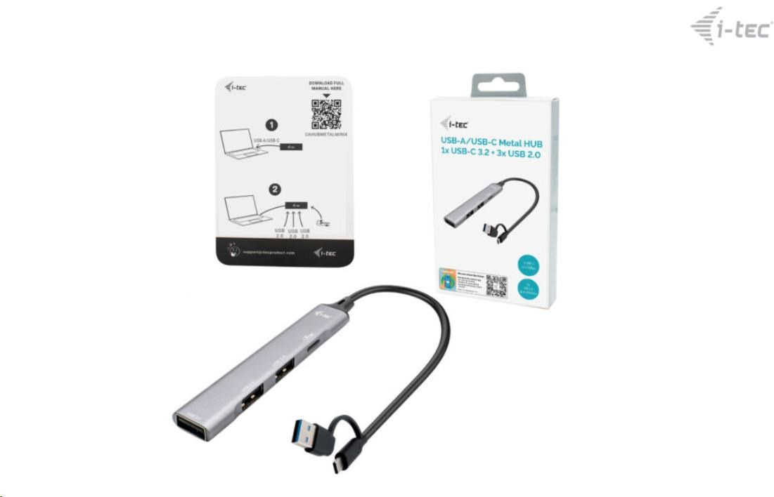 i-tec USB-A/USB-C Metal HUB 1x USB-C 3.1 + 3x USB 2.0