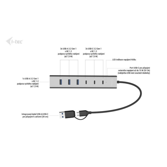 - Nabíjecí HUB USB-A/USB-C, až pro 7 zařízení