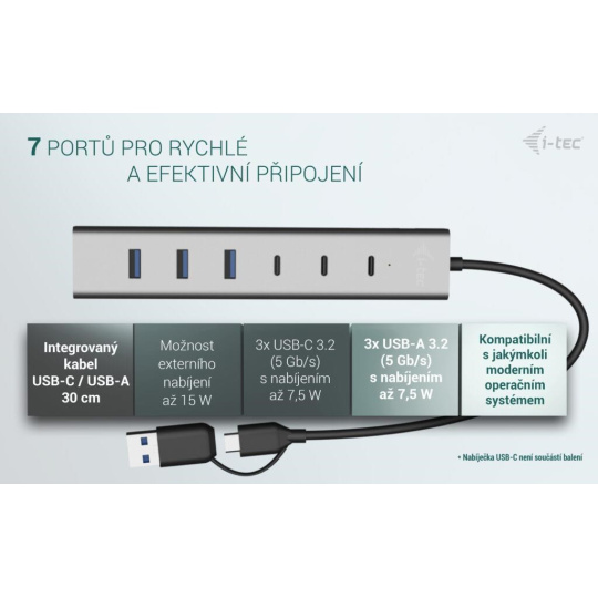 i-tec USB-C/USB-A Charging Metal HUB 7 port (3x USB-C, 4x USB-A)