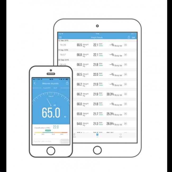Zásadní informace o vašem těle vyhodnocuje doprovodná aplikace MyVitals (iOS 9.0+, Android 5.0+). Třídí a sleduje údaje z různých iHealth zařízení (váhy, tělesné analyzátory, oxymetry, tlakoměry) na telefonu, tabletu nebo počítači a je dostupná v češtině a slovenštině.