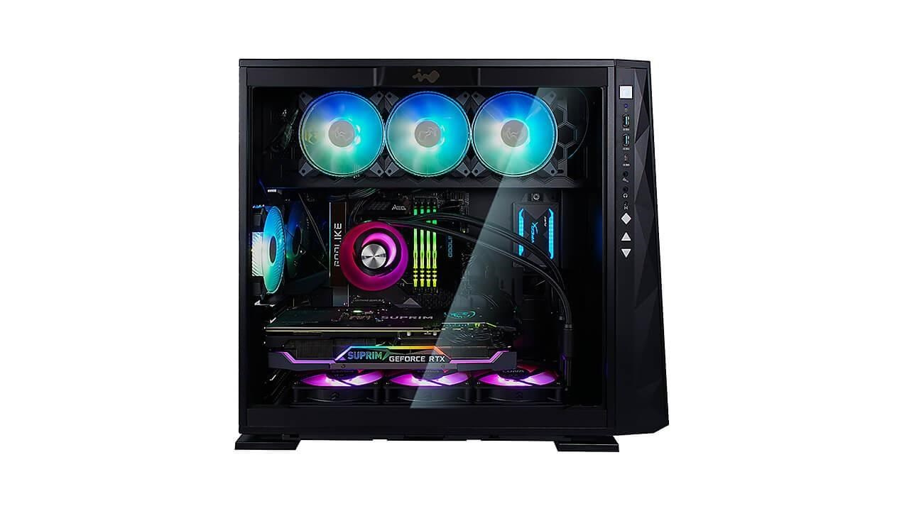 | Thermal Solution Compatibility | Air Cooling Fans: Top: 3 x 120 mm Rear: 1 x 120 mm Bottom: 3 x 120 mm (4 InWin Saturn ASN120 Fans Included) Water Cooling Radiator: Top: 1 x 360 mm Rear: 1 x 120 mm Bottom: 1 x 360 mm (Slim) |