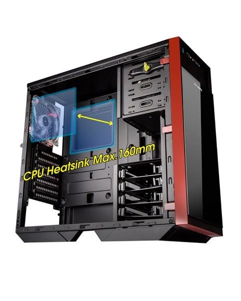 Vnitřek skříně disponuje dostatečným prostorem pro rozšíření, lze do něj zabudovat mimo jiné i několik high-end grafických karet do maximální délky 408 mm, nebo CPU chladič až do velikosti 170 mm. Důležitým prvkem je také dostatečně velký prostor pro organizaci a vedení kabelů. Na spodu skříně je pak příhodně umístěn odnímatelný prachový filtr, který kryje spodní větrací otvor.