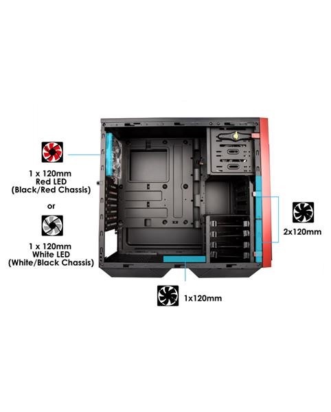 Počítačová skříň série 503 dokonale koresponduje s nejnovějšími PC komponenty a tak vytváří nádherný minimalistický moderní design. Přední strana je vybavena posuvným krytem, kterým můžete zakrýt nainstalované mechaniky a nechat tak vyniknout detailně vymodelovaný průduch. Průhledný postranní panel umožňuje náhlédnout dovnitř, pohled dovnitř bude upřen například na 120 mm LED zadní větrák, který je součástí skříně.