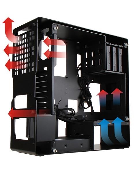Kromě elegantního a nádherného vzhledu skříň 904 disponuje také excelentním odvodem tepla, díky designu, který napomáhá k optimálnímu chlazení. Do skříně lze také zakomponovat 90mm zadní větrák, 140mm spodní větrák, externí 120/140mm vodní chlazení, nebo CPU chladič až do velikosti 137 mm.