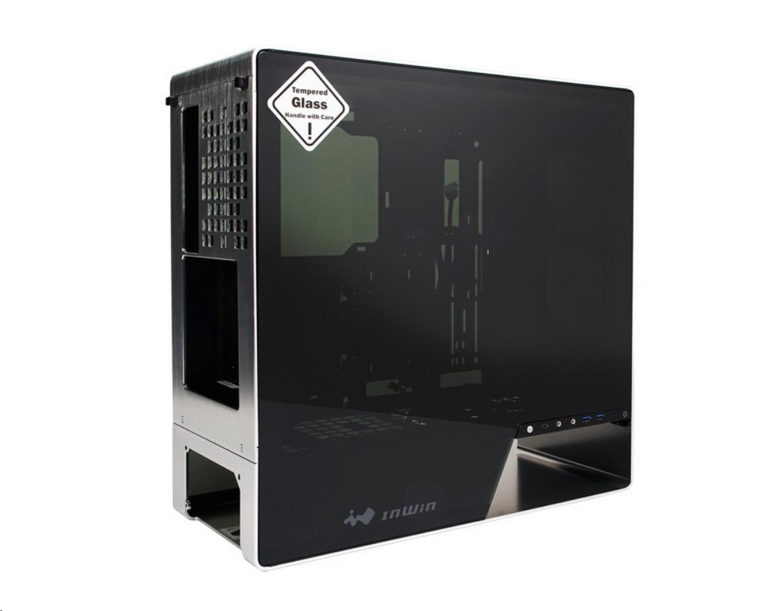 IN WIN skříň 905, Mid Tower, průhledný bok, bez zdroje, titanium grey, oled, 3x Sirius fan