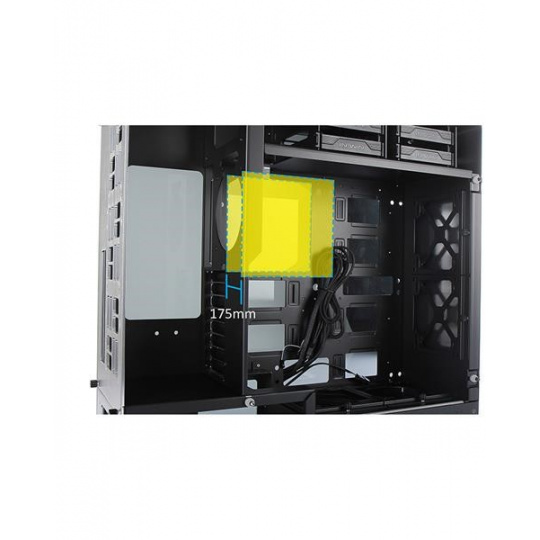 Oddělené pozice HDD a PSU zajišťují ideální proudění vzduchu skrz skříň ven zadními větracími otvory, aniž by se odvod teplého vzduchu brzdil o základní desky nebo grafické karty.