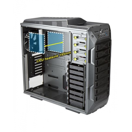 Tak abyste si mohli využít maximální výkon svého počítače, lze dovnitř skříně zakomponovat dvě jednotky vodního chlazení, a to do vrchní části až do délky 360 mm, a spodní částí až do délky 240 mm. Pro optimální cirkulaci vzduchu uvnitř skříně lze umístit až 10 větráků (včetně 4 předinstalovaných).