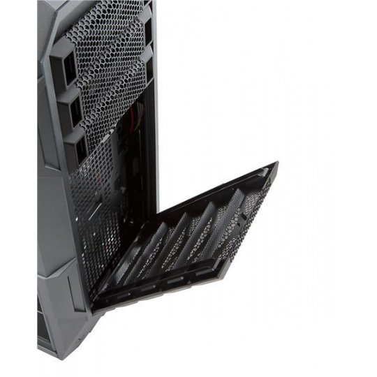 Skříň Grone pro herní počítače disponuje nejen velkým vnitřním prostorem pro rozšíření, do kterého lze nahlédnout přes boční průhledný rám, ale také celkovým nebojácným originálním vzhledem. Součástí skříně jsou také čtyři předinstalované větráky, přičemž za zmínku stojí zejména 2 přední, které jsou vybaveny LED osvětlením.