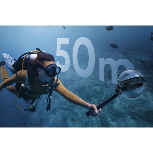 Prémiové podvodní pouzdro je navrženo speciálně pro kameru Insta360 X5, aby umožnilo natáčet plynulé a ničím nerušené 360° video až do hloubky 50 metrů. Díky precizní optické konstrukci se pouzdro zcela ztratí ve výsledném záběru – bez švů, bez odlesků, bez kompromisů.