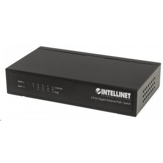 Intellinet 5-port Gigabit PoE Switch, 4x GbE PoE+, 1x GbE, PoE 60W, fanless