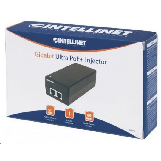 Intellinet Gigabit Ultra PoE+ Injector, 1x 60W port, IEEE 802.3bt, IEEE 802.3at/af