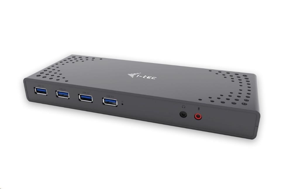 i-tec USB 3.0 / USB-C 5K Univerzální dualní dokovací stanice, 2x 4K 60Hz video, 2x HDMI, 2x Display Port, 1x Ethernet, 6x USB 3.0, 1x Audio/Mikrofon Jack, přepínač ON/OFF, podpora Kensington Lock, pro notebook, tablet, Windows, Mac OS, Linux, Android, kompatibilní s Thunderbolt 3