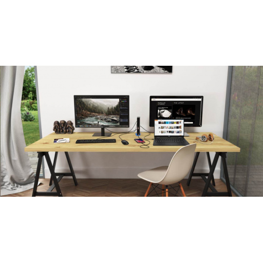 Univerzální dokovací stanice, kterou lze použít prakticky s jakýmkoliv notebookem, neboť je možné ji připojit do libovolného USB portu (USB 3.0, USB-D, Thunderbolt 3, nebo dokonce i do staršího USB 2.0).