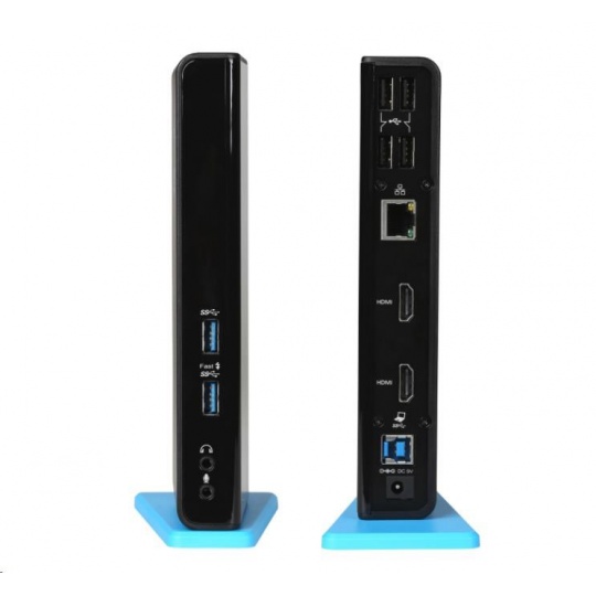 Stanice podporuje až 2x externí monitor, který připojíte díky HDMI portům. 6x USB port, spolehlivé a rychlé připojení k internetu díky integrovanému LAN portu a nechybí ani podpora audio vstupu a výstupu.