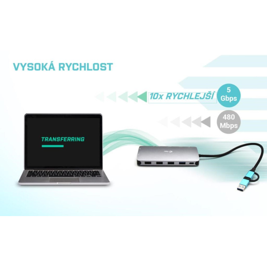 - Dokovací stanice podporuje až 100W napájení připojeného notebooku nebo tabletu