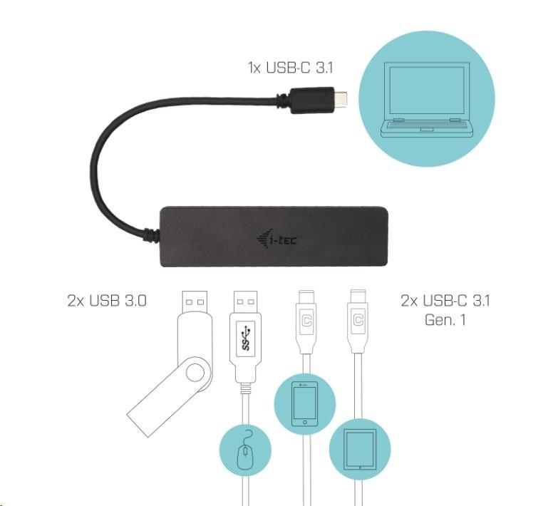 i-tec USB-C Metal HUB 2x USB 3.0 + 2x USB-C
