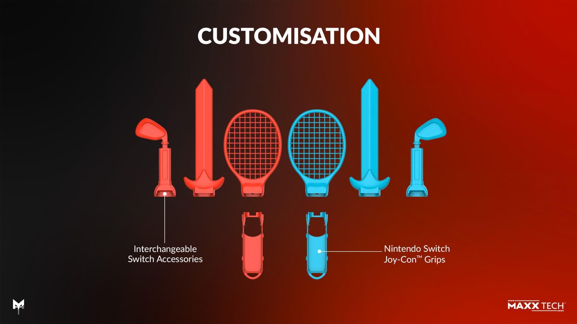 12v1 Joy-Con Sports Kit je kompatibilní s oběma konzolema Nintendo Switch™ 2 a 1, což vám umožní vychutnat si své oblíbené hry na kterékoli konzoli.