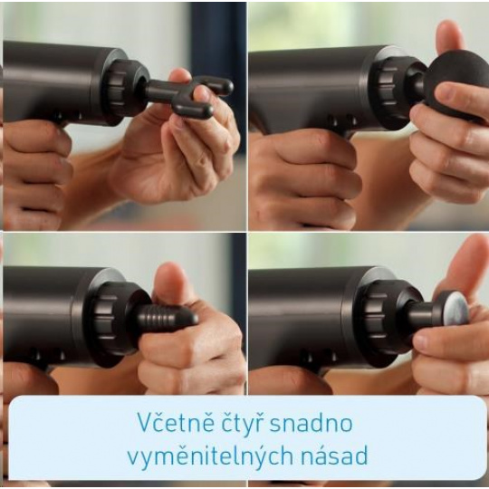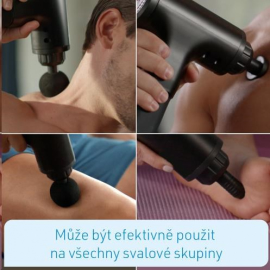 Šikovná masážní pistole se 6-ti uklidňujícími úrovněmi intenzity Efektivní technika perkusí - uvolní vaše hluboké svaly rovnoměrně pulzujícími rázy Snadno vyměnitelné masážní nástavce Podporuje rychlou regeneraci vašich svalů a uvolnění napětí Má stimulující, povzbuzující a příznivý účinek pro lidi všech věkových skupin Povzbuzující regenerace svalů před a po tréninku Může být efektivně použit na všechny svalové skupiny Praktický design s chytrým úchopem - snadno dosáhnete na kteroukoli část těla Vhodné jako na samo-masáž, tak i na partnerskou masáž Akumulátorové, přenosné a dobíjecí Originál známý z TV! Zažijte i vy senzační hlubokou relaxaci s hloubkovou masáží tkání od Kendox Muscle Relief! S Kendox Muscle Relief můžete uvolnit každou část těla, a to díky efektu vysoko frekvenční hloubkové masáže. Cílené impulsy se dokonce dostanou i do hluboko uložených tkání a svalových oblastí. Stimuluje krevní oběh a zlepšuje se lymfický průtok. Uvolní napětí, uvolní se fascie, svaly se stanou pružnými a opět měkkými. Kendox Muscle Relief má 6 úrovní intenzity a 4 snadno vyměnitelné masážní hlavice. Vidlicovou hlavou masírujte krk, páteř a achilovku. Velké svaly a svalové skupiny s kulovou hlavou. Pomocí bodové hlavy masírujte klouby - a s plochou hlavou všechny ostatní části těla - zejména chodidla. Integrovaná lithiová baterie s dlouhou životností zaručuje hodiny provozu pouze na jedno nabití. To vám umožní vychutnat si uklidňující relaxaci skutečné vysoko frekvenční hloubkové masáže doma velmi snadno. Kdykoliv to potřebujete! Informace o produktu: Materiál: ABS, silikagel, kov, elektrické stroje. Příkon: 20 W ~ 50 W. Režim rychlosti: 1-6 úrovní Barva: černá Masážní hlavice: 4 typy masážních hlav Baterie: lithium-iontová baterie Motor: bezkartáčový motor Volt: 110V ~ 240V Kapacita baterie: 2 000 mah Úroveň 1: 2 900 str Úroveň 2: 3 100 ppm Úroveň 3: 3 300 str Úroveň 4: 3 500 ppm Úroveň 5: 3 700 ppm Úroveň 6: 3 900 ppm Obsah balení Obsah balení: 1 x Kendox Muscle Relief 1x standardní násada 1x plochá násada 1x kuželovitá násada 1x násada ve tvaru U 1x nabíjecí kabel.