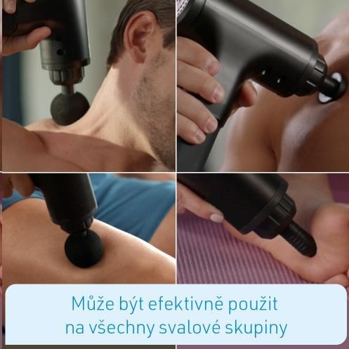 Šikovná masážní pistole se 6-ti uklidňujícími úrovněmi intenzity Efektivní technika perkusí - uvolní vaše hluboké svaly rovnoměrně pulzujícími rázy Snadno vyměnitelné masážní nástavce Podporuje rychlou regeneraci vašich svalů a uvolnění napětí Má stimulující, povzbuzující a příznivý účinek pro lidi všech věkových skupin Povzbuzující regenerace svalů před a po tréninku Může být efektivně použit na všechny svalové skupiny Praktický design s chytrým úchopem - snadno dosáhnete na kteroukoli část těla Vhodné jako na samo-masáž, tak i na partnerskou masáž Akumulátorové, přenosné a dobíjecí Originál známý z TV! Zažijte i vy senzační hlubokou relaxaci s hloubkovou masáží tkání od Kendox Muscle Relief! S Kendox Muscle Relief můžete uvolnit každou část těla, a to díky efektu vysoko frekvenční hloubkové masáže. Cílené impulsy se dokonce dostanou i do hluboko uložených tkání a svalových oblastí. Stimuluje krevní oběh a zlepšuje se lymfický průtok. Uvolní napětí, uvolní se fascie, svaly se stanou pružnými a opět měkkými. Kendox Muscle Relief má 6 úrovní intenzity a 4 snadno vyměnitelné masážní hlavice. Vidlicovou hlavou masírujte krk, páteř a achilovku. Velké svaly a svalové skupiny s kulovou hlavou. Pomocí bodové hlavy masírujte klouby - a s plochou hlavou všechny ostatní části těla - zejména chodidla. Integrovaná lithiová baterie s dlouhou životností zaručuje hodiny provozu pouze na jedno nabití. To vám umožní vychutnat si uklidňující relaxaci skutečné vysoko frekvenční hloubkové masáže doma velmi snadno. Kdykoliv to potřebujete! Informace o produktu: Materiál: ABS, silikagel, kov, elektrické stroje. Příkon: 20 W ~ 50 W. Režim rychlosti: 1-6 úrovní Barva: černá Masážní hlavice: 4 typy masážních hlav Baterie: lithium-iontová baterie Motor: bezkartáčový motor Volt: 110V ~ 240V Kapacita baterie: 2 000 mah Úroveň 1: 2 900 str Úroveň 2: 3 100 ppm Úroveň 3: 3 300 str Úroveň 4: 3 500 ppm Úroveň 5: 3 700 ppm Úroveň 6: 3 900 ppm Obsah balení Obsah balení: 1 x Kendox Muscle Relief 1x standardní násada 1x plochá násada 1x kuželovitá násada 1x násada ve tvaru U 1x nabíjecí kabel.